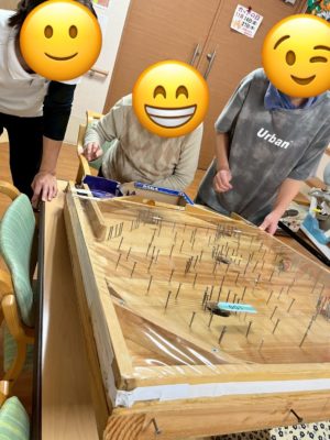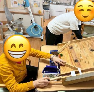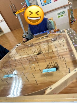 11月は「ひら中振長寿の里」さんから手作りスマートボールをお借りして、みんなで遊びました。景品付きで点数を競い合いながら、昔懐かしいスマートボールに利用者さんも職員も夢中!笑顔いっぱいの時間になりました😊